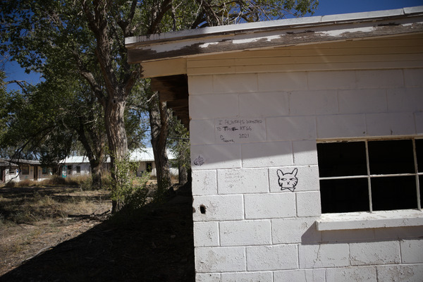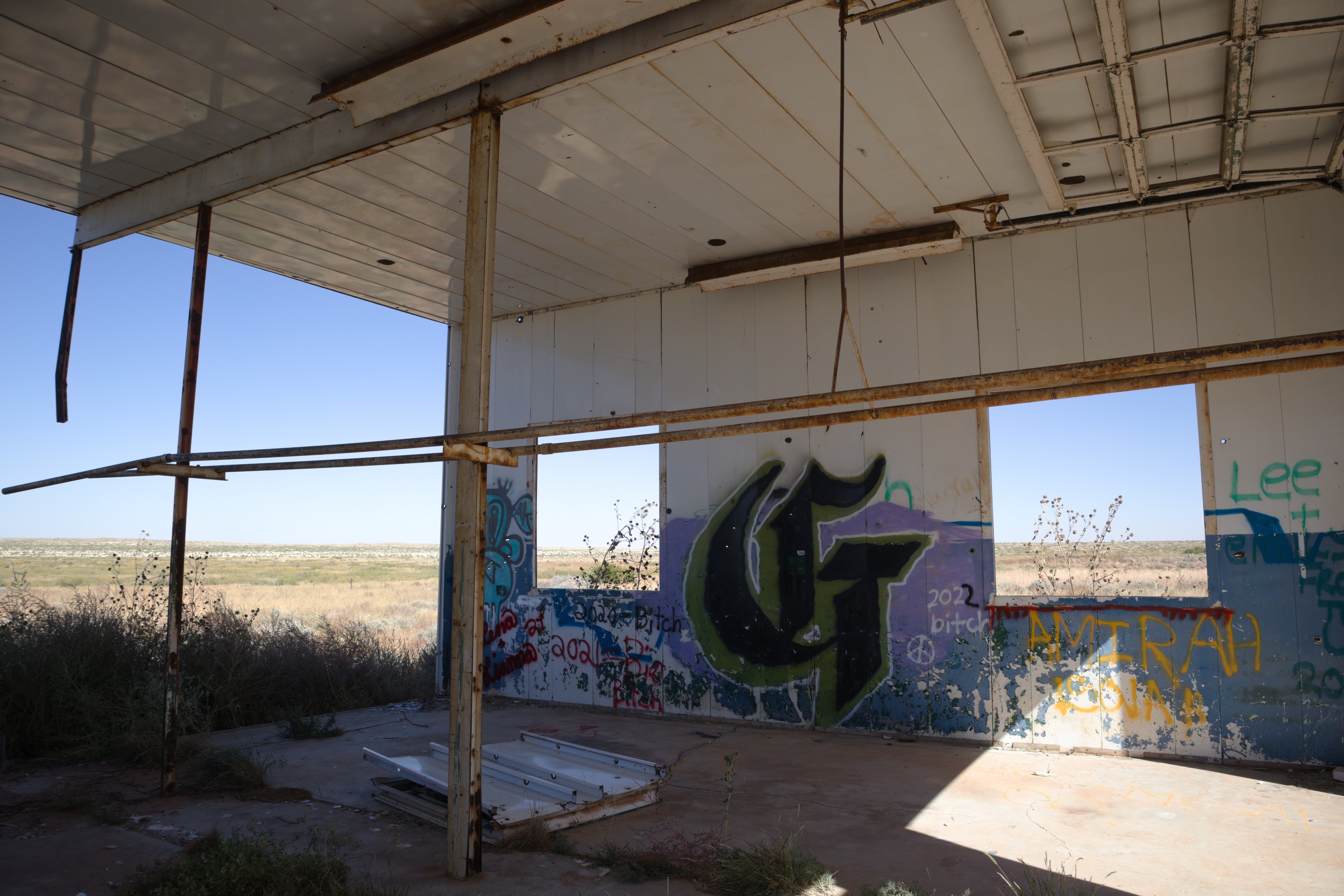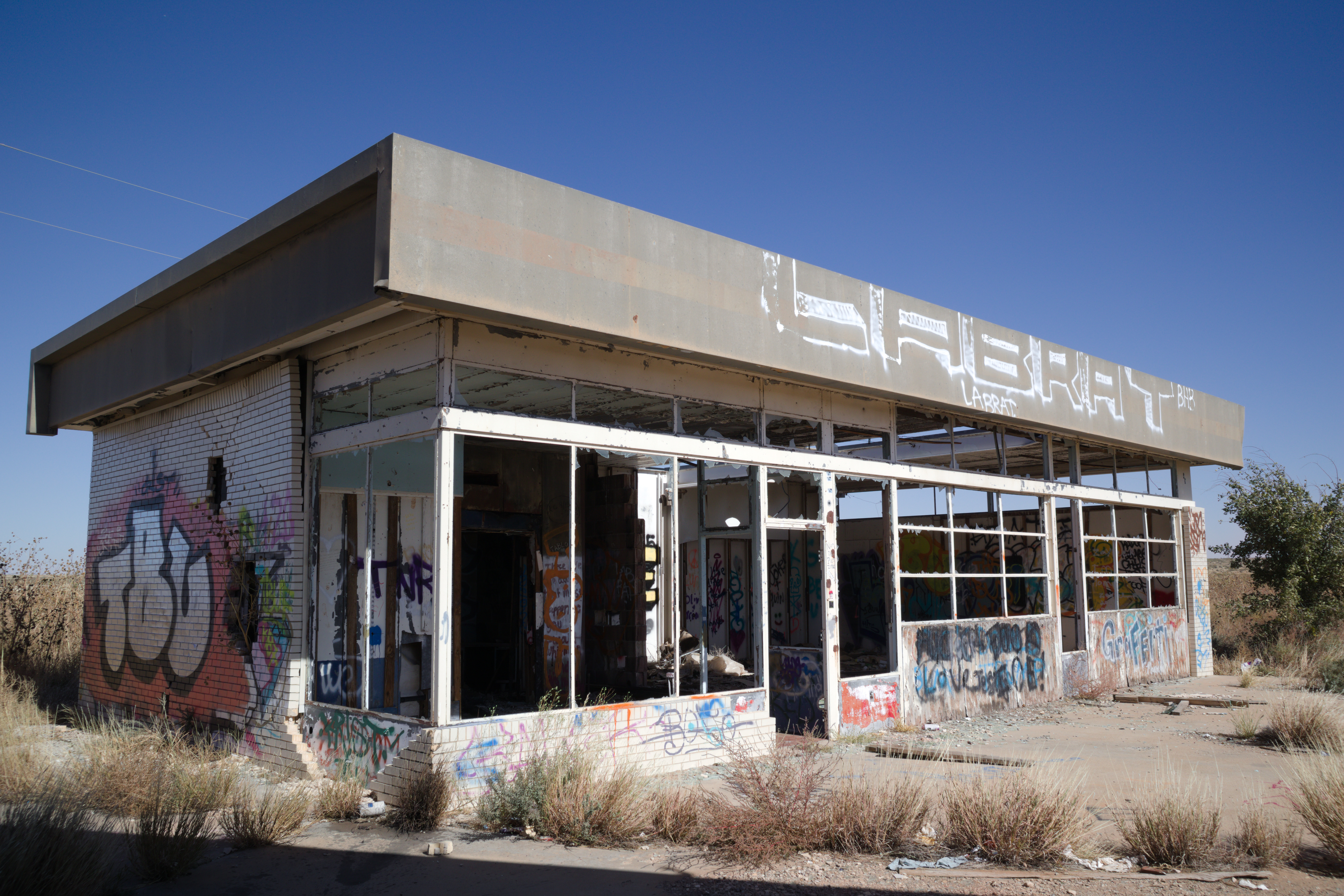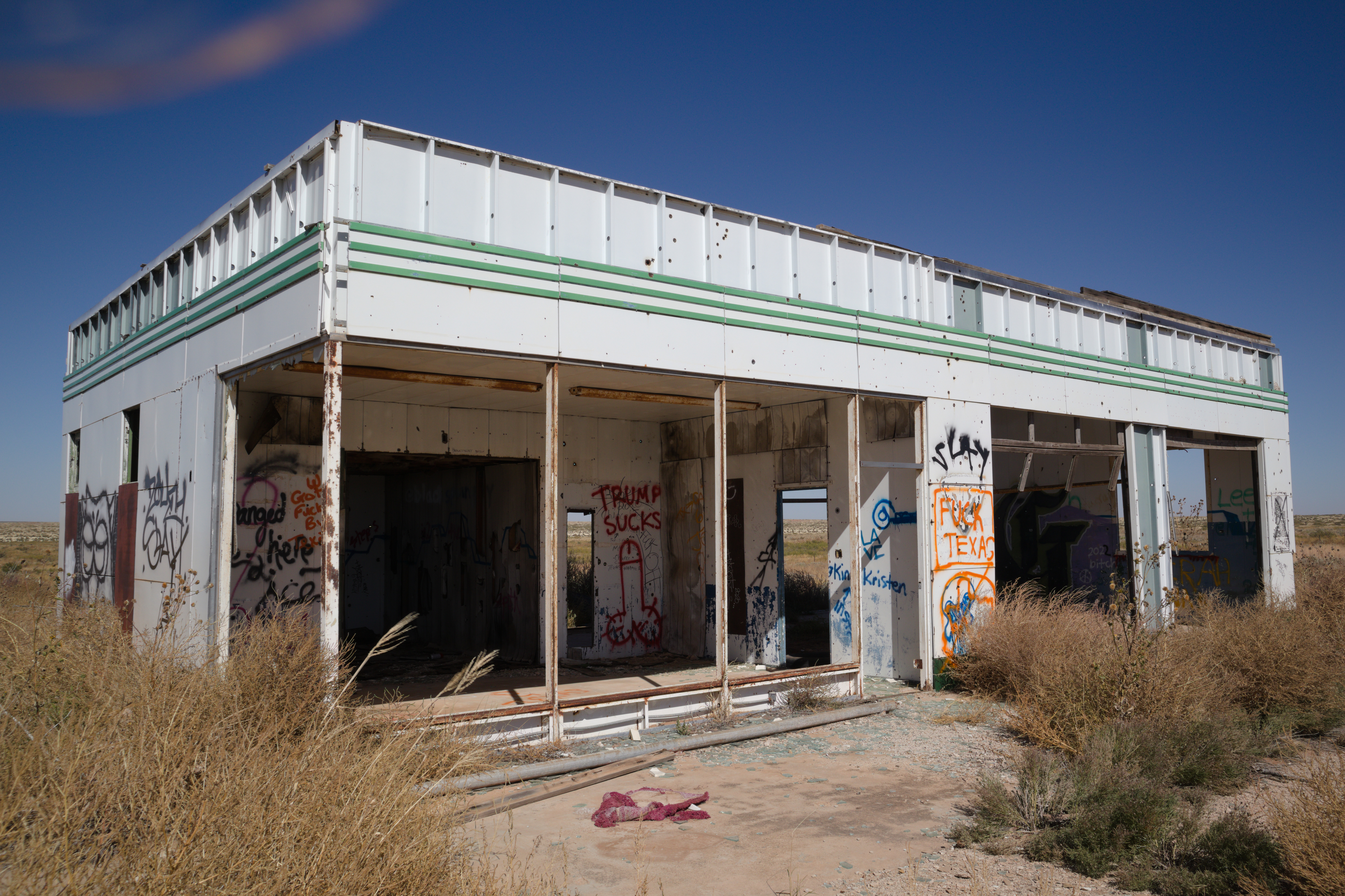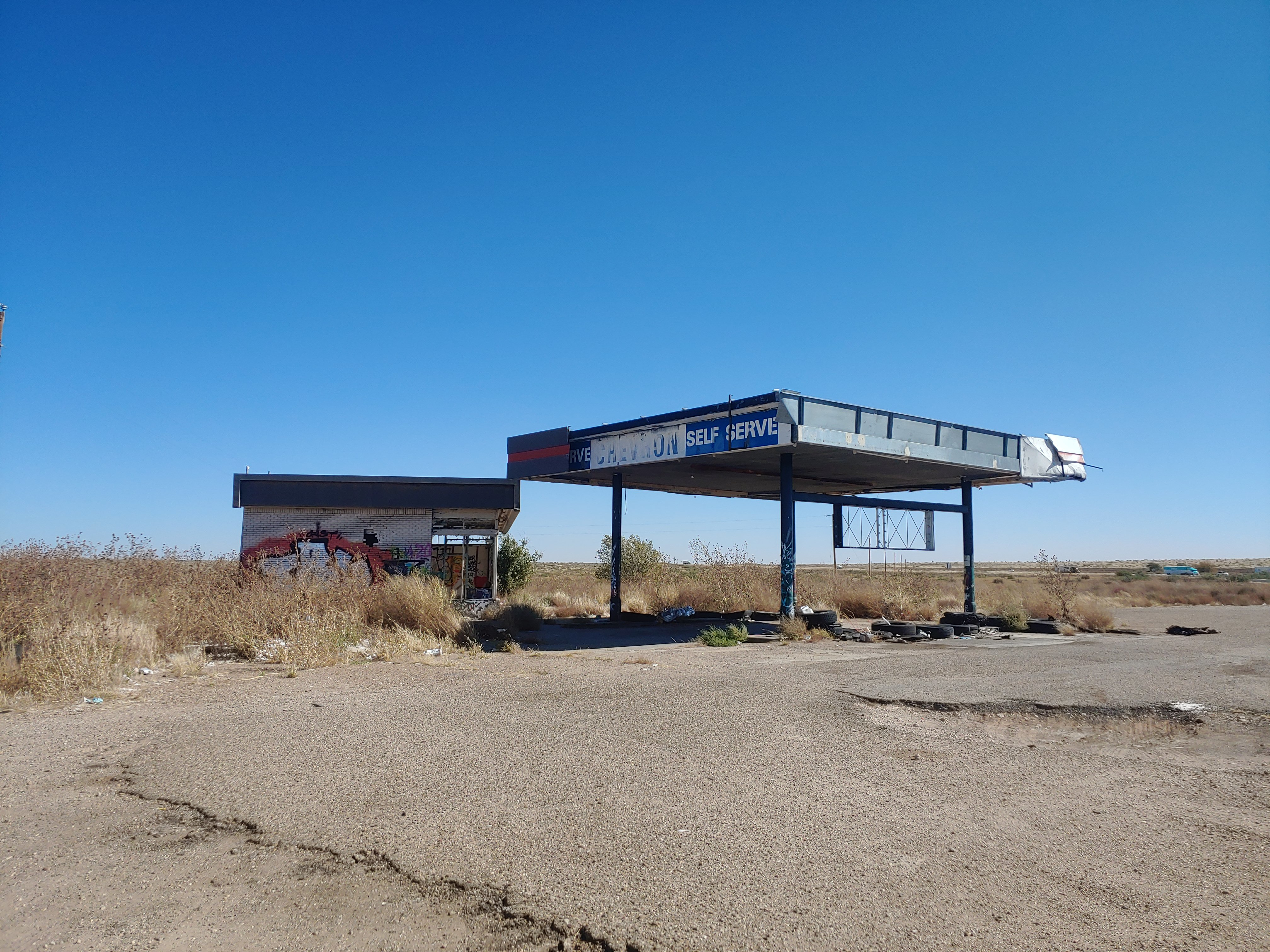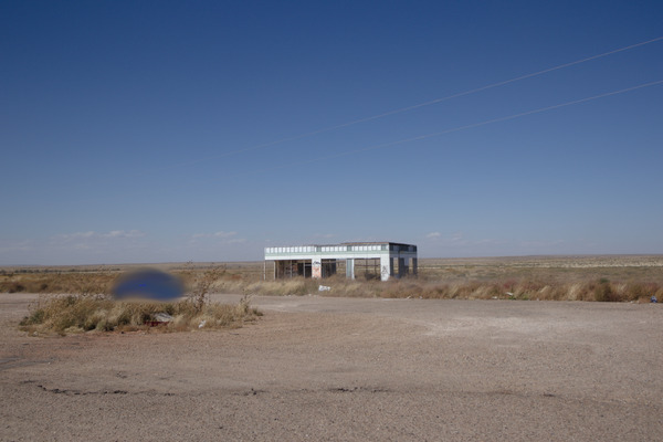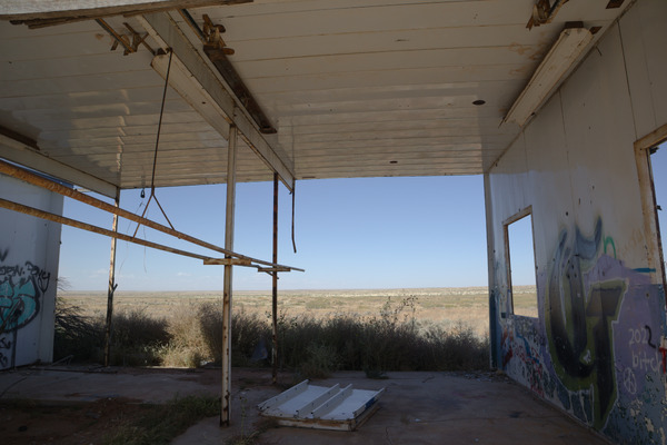 Motel and diner right on the border of New Mexico and Texass