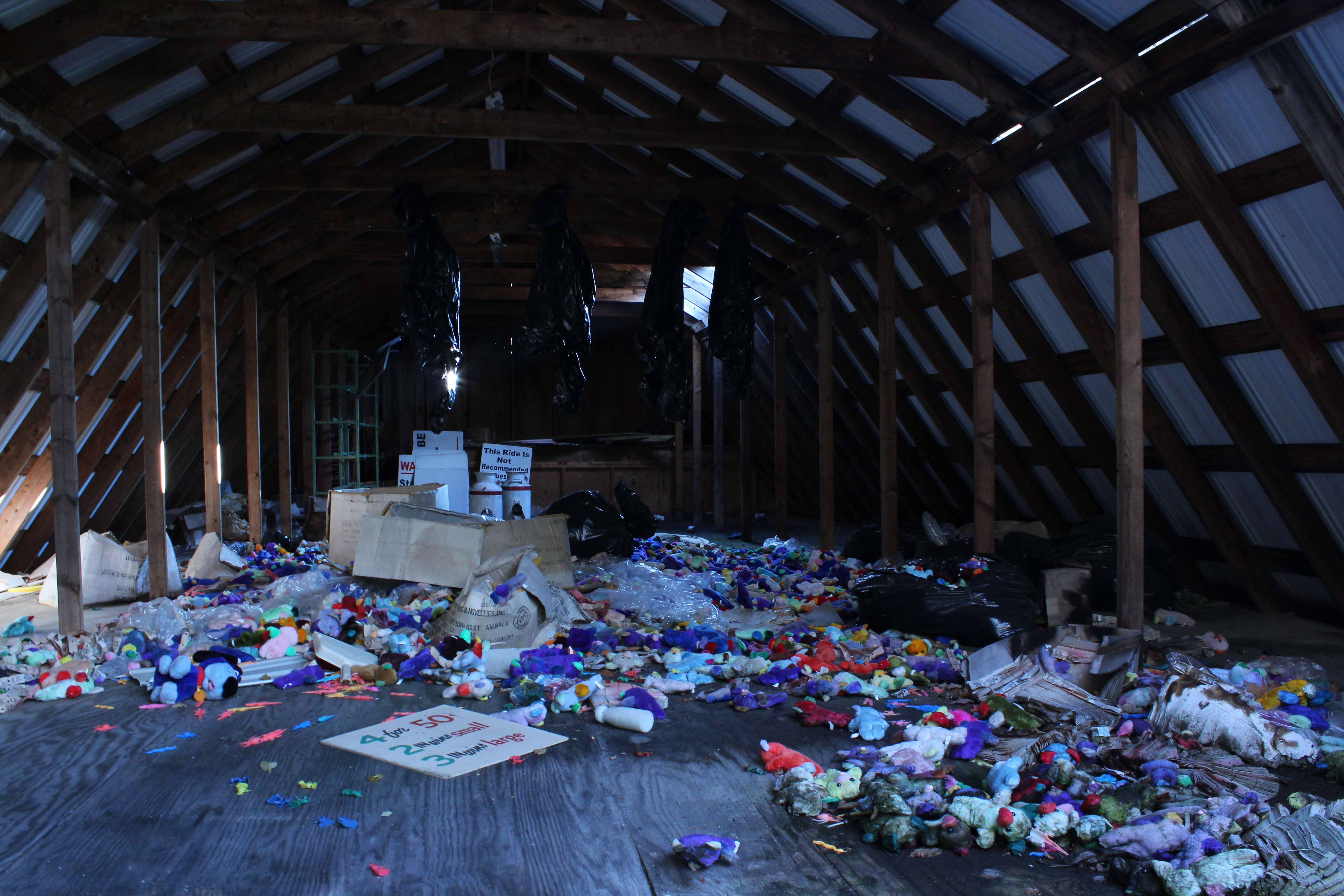 I saw this huge block of foam in the woods and had no idea what it was until a few days later when I found a youtube video of the place from when it was open. Actors would use it to jump off the roof during performances. here's the video (0:42)