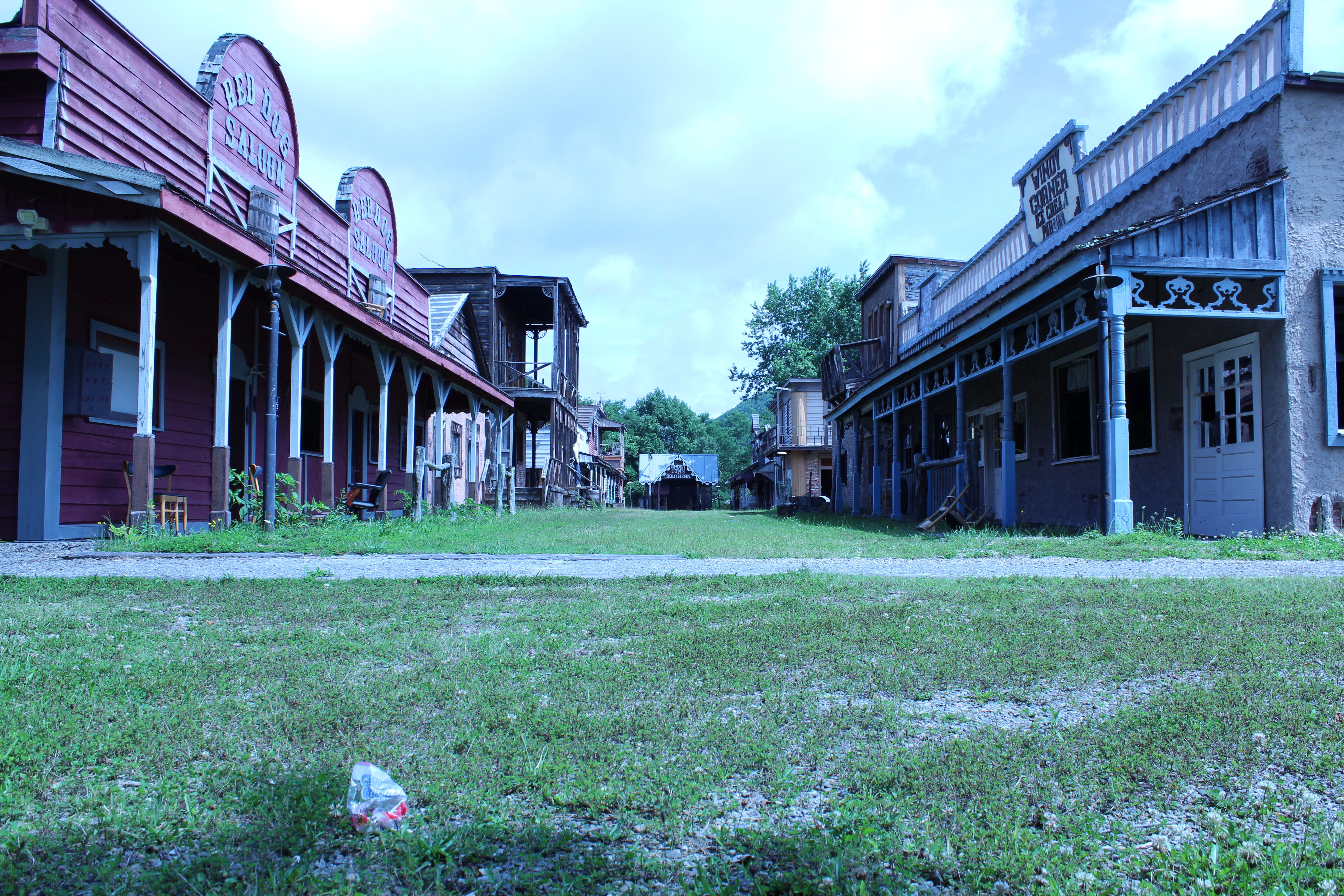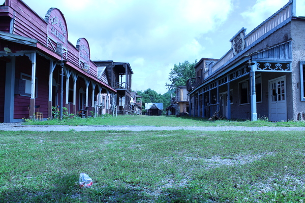 When the park was open they had actors stage gun fights in the street throughout the day. I think these barrels would shoot water out like they had been hit.