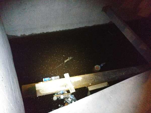 I think this was an elevator shaft. The water smelled like ASS and you couldn't see the bottom. No idea how deep it is.