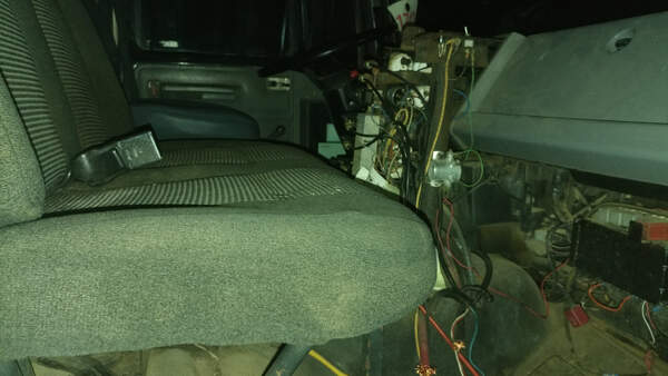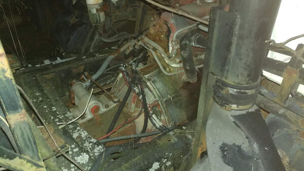 Field with a few abandoned street cleaning trucks.